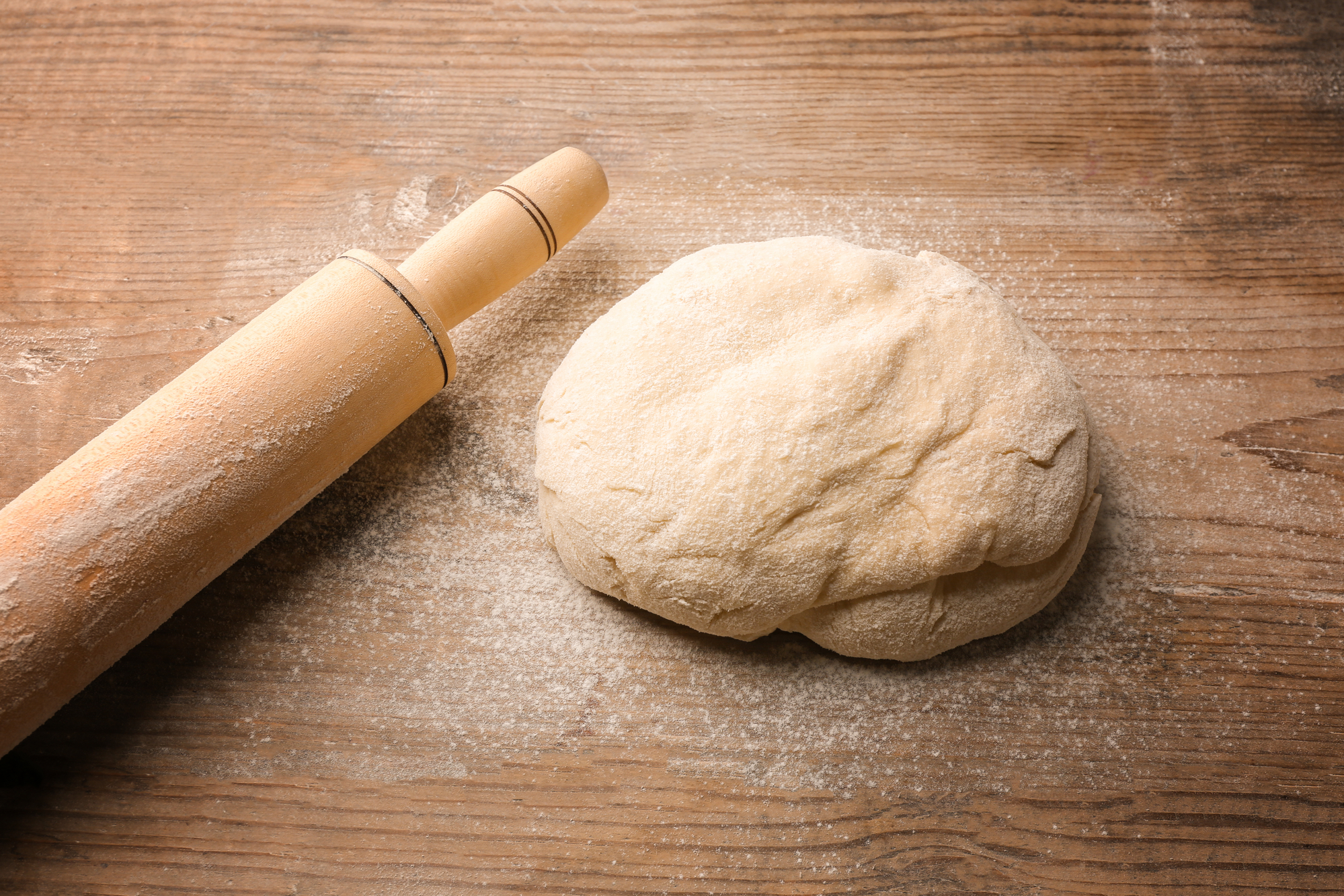 Fresh dough on wooden background