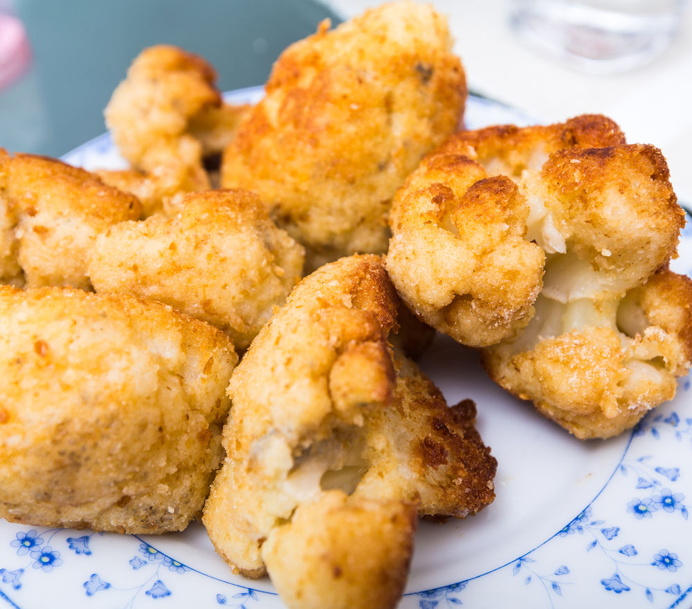 breaded and fried a cauliflower lying on a plate